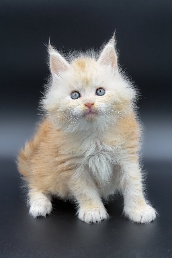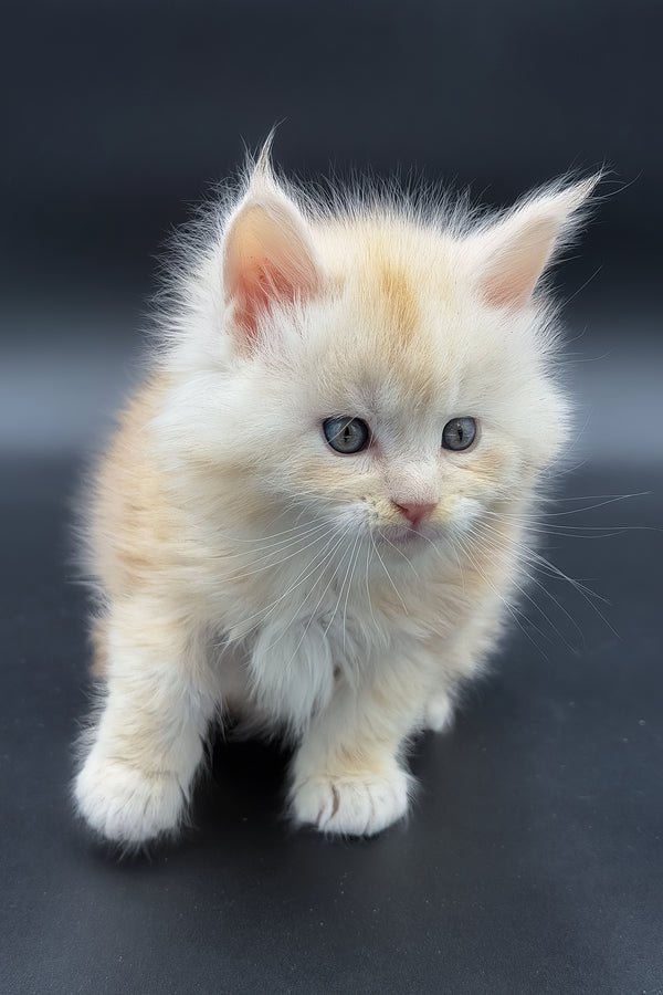 My name is Marun, a Maine Coon boy with a red smoke shaded coat and calm green eyes that gently follow you. My fur has a soft, layered depth that shifts as I move, and I am growing into a large, strong companion with a quiet, steady presence. I like to stay close in a natural way moving with you from room to room, not to seek attention, but simply to be part of your space and share a calm, easy connection.